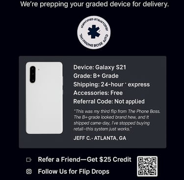 The Phone Boss Ultd LLC is a mobile phone resale business that prioritizes speed and reliability. Established by Richard, it optimizes the processes for supplier intake and inventory management. Each operational layer is crafted for accuracy and clarity. Whether it’s sourcing, selling, or shopping, The Phone Boss provides swift and seamless service.